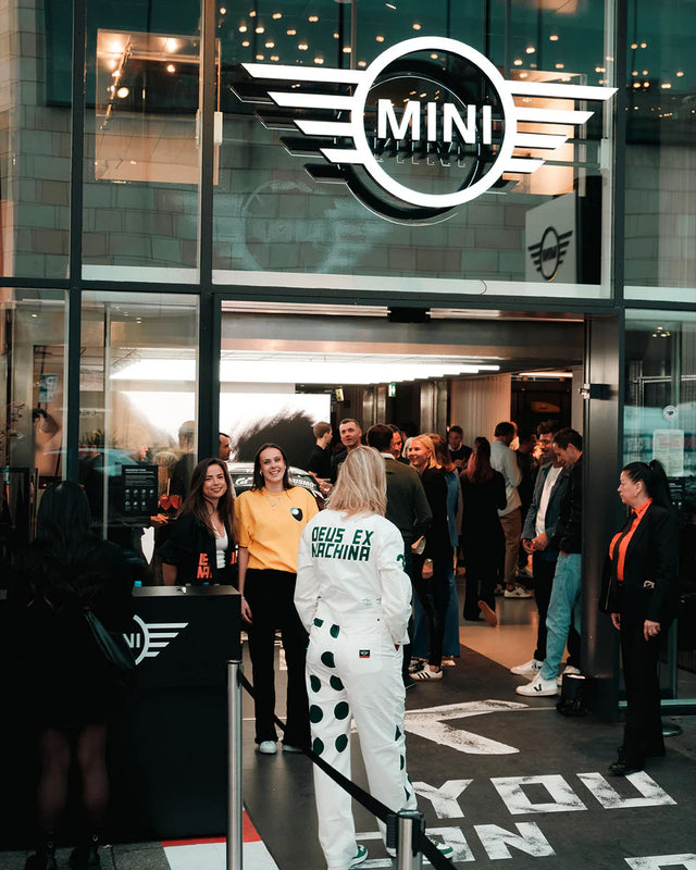 The MINI Pavillon was was packed shoulder to shoulder, buzzing with press, friends of the brand, and a sea of MINI and Deus devotees. If there was ever a moment that confirmed this collaboration had legs, it was right there in the heart of the city.