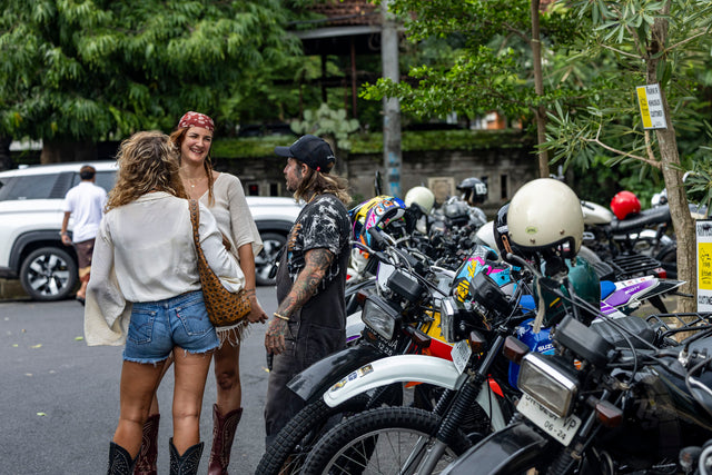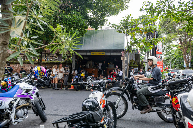 Kami berkumpul di tengah Denpasar, di sebuah kedai kopi sederhana yang akrab bagi warga lokal. Sepanjang satu blok dipenuhi motor; arus kedatangan yang tak henti membuat lalu lintas tersendat dan seluruh area parkir penuh. Obrolan saling bersahutan, menyelimuti suasana dan membangun energi. Di tengah kerumunan yang kian padat, rasa antusias pun perlahan berubah menjadi kegembiraan yang membara.