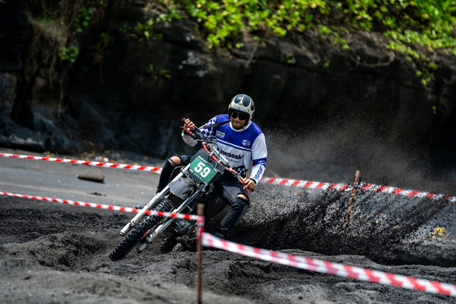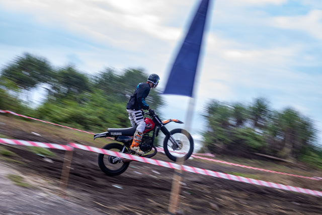 This year’s playground was Pantai Kelecung, raw, remote, and still clinging to the Bali of old. Coconut palms, riverbanks, and open fields formed our trackside theatre. The route? A knot of sand, grass, and grit designed to test balance and patience in equal measure. They tore through it, engines barking, tyres biting, laughter bouncing off the palms.