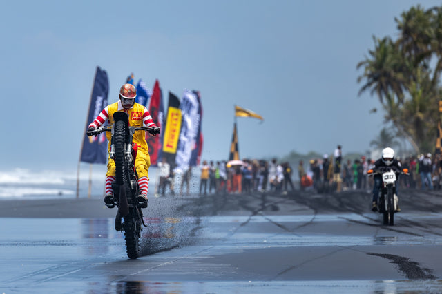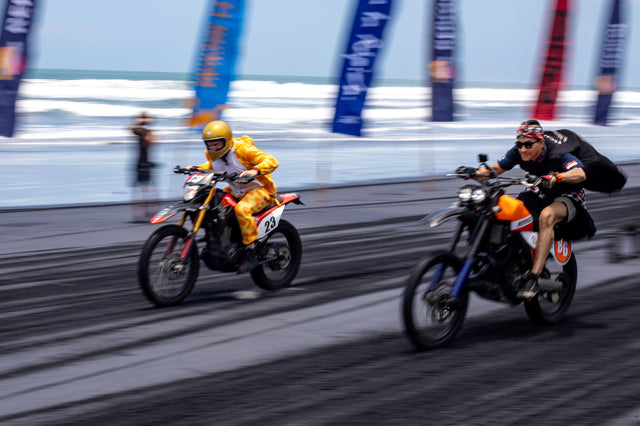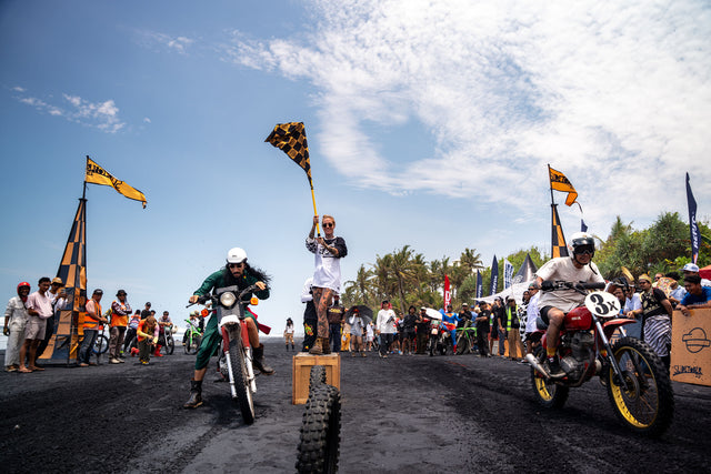 The Deus circus packed up overnight and rolled twenty clicks north to Pasut Beach, where the black sand shimmered like a tarmac mirage. Day two flew under the banner of the Dress Up Beach Drags, a place where chaos is an art form.